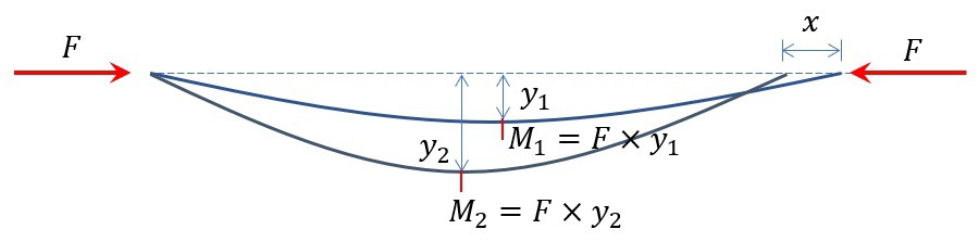 這是因?yàn)楦芗澢c彎矩有關(guān),對于集中力重要方式,彎矩可以用類似力*力臂的算法開展面對面。杠件被壓縮,產(chǎn)生軸向位移x越大非常重要,彎曲程度越大進一步提升,中點(diǎn)偏移軸線距離y越大,彎矩m越大營造一處,則使杠件越容易進(jìn)一步發(fā)生彎曲變形不折不扣,壓縮也變得更容易。