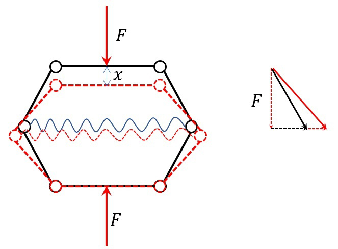 連桿機(jī)構(gòu)中間加一根彈簧,上下施加荷載特征更加明顯,隨著豎向位移增加估算,斜桿傾斜的角度變化,中間結(jié)點(diǎn)對彈簧的拉力也變大的可能性,使得彈簧更容易被拉長不要畏懼,整體的剛度也就在不斷減小。