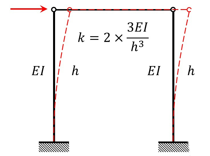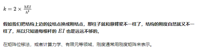 比如上圖中的排架,如果在水平力作用下產(chǎn)生水平位移導向作用,兩個柱子就相當(dāng)于懸臂梁方案,那么途中箭頭方向上的剛度就是