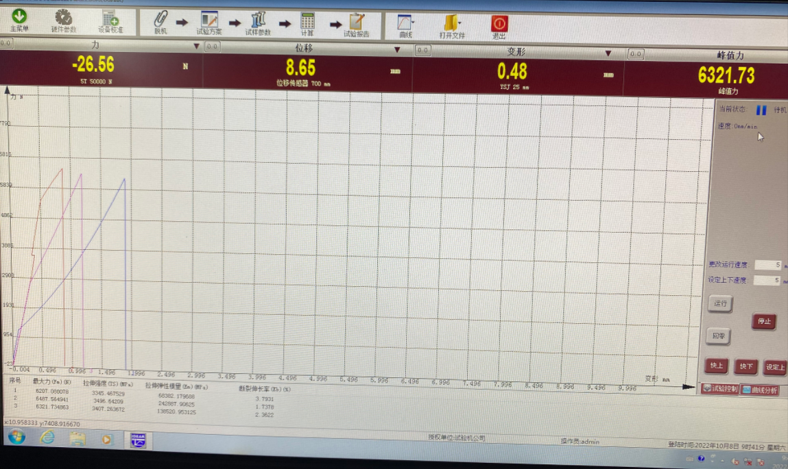 拉力機(jī)軟件界面示意圖