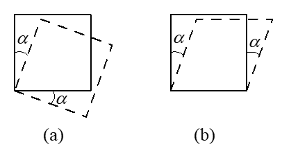 (a)圖所示角應(yīng)變?yōu)榱悖óa(chǎn)生了剛體位移增幅最大,沒有發(fā)生變形);(b)圖所示角應(yīng)變?yōu)閍