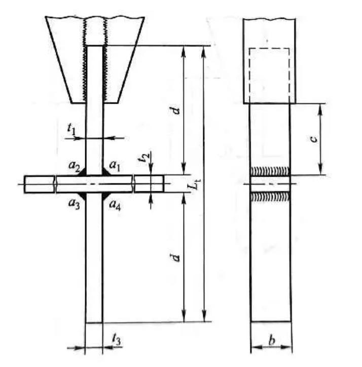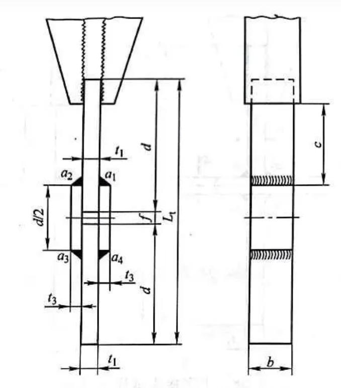 2)十字接頭試樣的尺寸應符合圖2-58的規(guī)定今年。