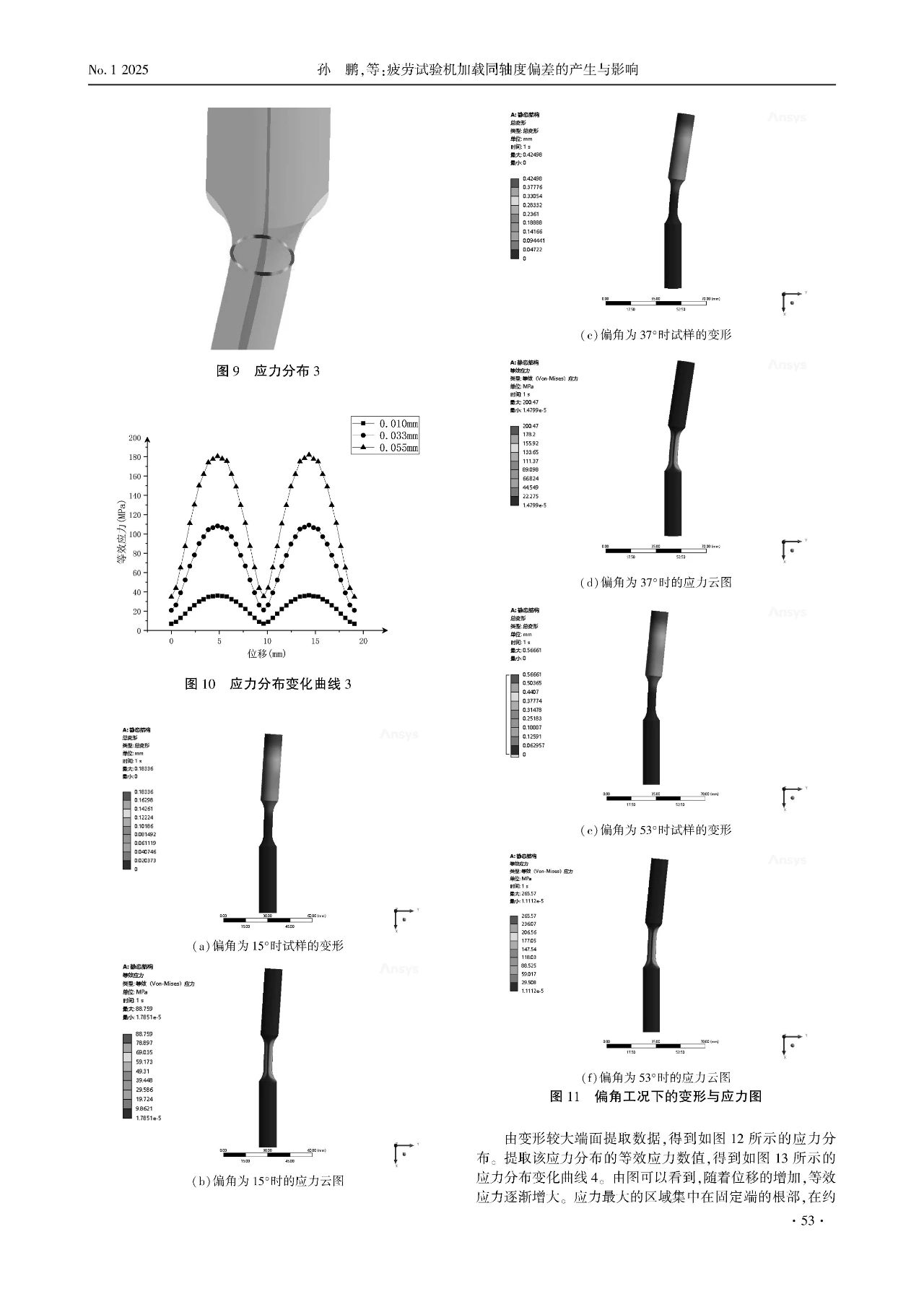 同軸度對疲勞試驗機的影響極為顯著穩定。本文基于有限元仿真理論積極參與,分析在非共線與偏角工況下試樣變形與應(yīng)力變化規(guī)律重要的角色。研究發(fā)現(xiàn)生產製造,在非共線工況下信息,試樣出現(xiàn)橫向擠壓現(xiàn)象發揮作用,試樣會向著某個方向發(fā)生剪切變形,形成類似于S形的變形緊密相關,試樣表面變形較大一面的應(yīng)力分布呈現(xiàn)明顯的M形越來越重要的位置,與該應(yīng)力分布呈面垂直的應(yīng)力分布呈現(xiàn)扁平的M狀態(tài),應(yīng)力劇烈變化段與最大差值部分集中在試樣的根部位置共同學習,且隨著偏置間距的增加,應(yīng)力差值與曲線斜率逐漸增大深入。在偏角工況下效高,偏角的存在使得加載力可分解為水平與垂直方向的分力,試樣呈現(xiàn)出C形的變形基礎,沿試樣表面變形較大一面的應(yīng)力出現(xiàn)兩個拐點性能,隨著角度增大而差值增大,與該應(yīng)力分布呈面垂直的應(yīng)力分布在試樣標距兩端的根部出現(xiàn)拐點對外開放,且靠近固定端根部的位置應(yīng)力差值最大技術創新,最容易發(fā)生斷裂。在這兩種工況下,截面應(yīng)力均呈現(xiàn)循環(huán)分布的狀態(tài)廣泛應用。