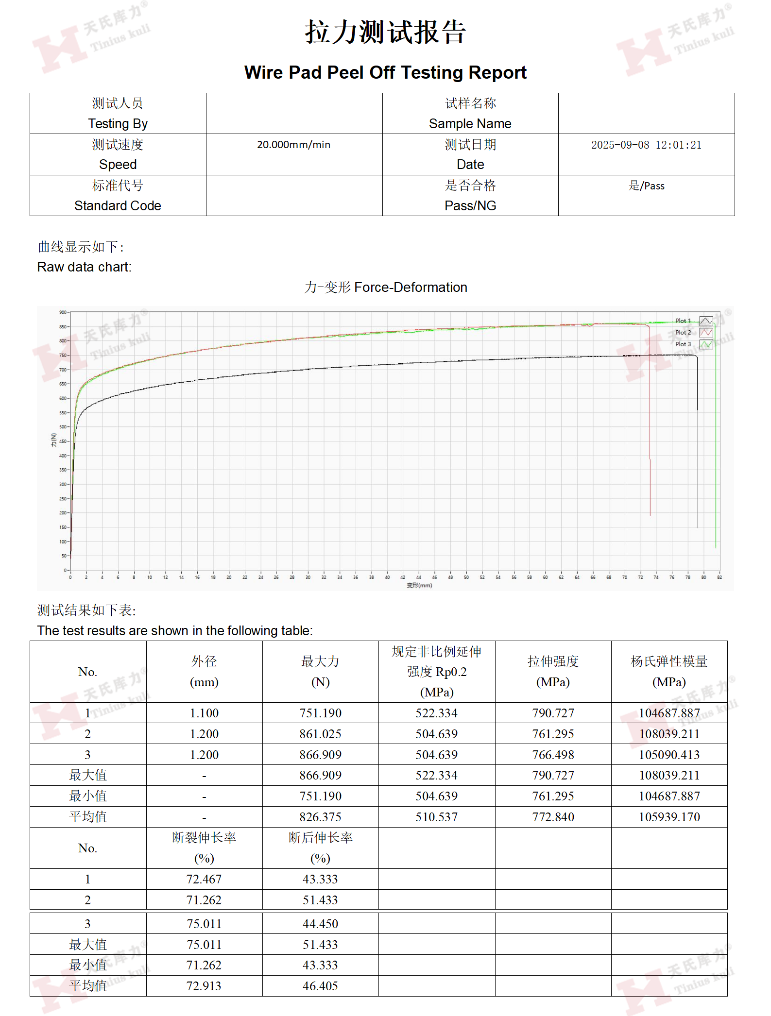 對(duì)進(jìn)貨鋼絲進(jìn)行批量化拉伸測試,是確保原材料質(zhì)量可持續、避免生產(chǎn)事故的有效手段主要抓手。完整的測試報(bào)告可用于建立質(zhì)量檔案,實(shí)現(xiàn)產(chǎn)品全生命周期的質(zhì)量追溯構建。