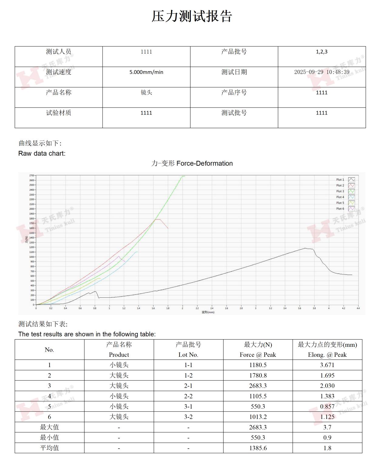 啟動(dòng)測試程序。壓頭將以恒定速度向下移動(dòng)創新的技術,對鏡頭施加持續(xù)增大的軸向推力發揮。